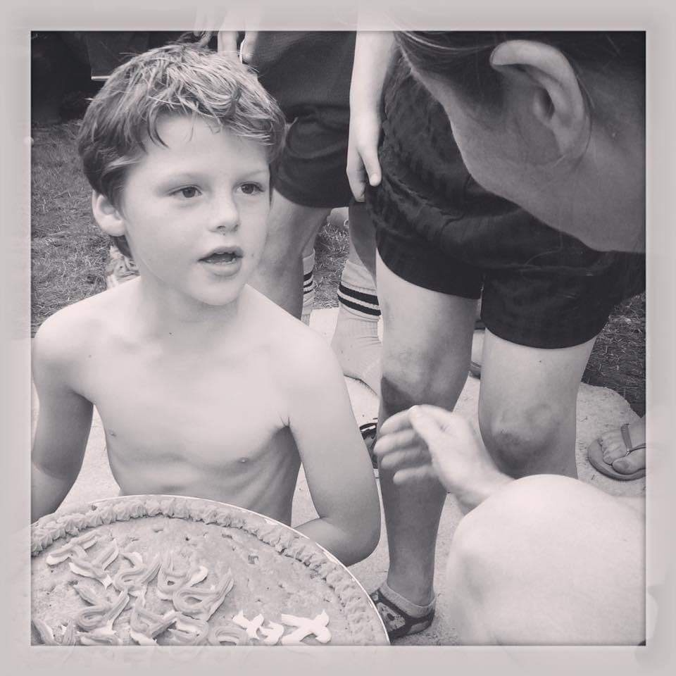 On his 7th birthday, just before the incident, it was decided that there was to be no party as we were taking him to the theatre. This quickly turned into a mega party; some 30 children in our back garden; football played over the park (that was soon to become much more than that!) and a host of hot and sweaty children chomping down on hot dogs whilst enjoying not just any cake but a cookie cake.
